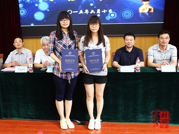 化学竞赛指导教师徐晓洁和物理竞赛指导教师魏朝俊作为教师代表发言,他们对过去一年的物理化学竞赛做了总结,肯定了参赛同学的辛勤付出。并对2015年的物理化学竞赛提出要求,希望同学们对物理化学竞赛充满信心,充分利用暑假时间完成竞赛的准备工作。