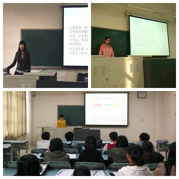 述学会上,每位同学以PPT形式,对自己上一学期的思想、学习、生活、工作等方面做了具体总结。大一的同学逐渐意识到大学已经不同于高中,更多的要学会自己我管理,自我学习,只有抓住身边每一个机会,才能得到更好的平台展示自我。很多同学通过一个学期的努力,在学院和学校组织的各种活动中,都小有成就,为班级和学院争光。还有一部分同学,也立志要做学霸,学习成绩名列前茅。当然,通过人与人间的沟通交流,不仅增强了同学间的友谊,同时也让大家更好地进行相互的学习,共同进步。