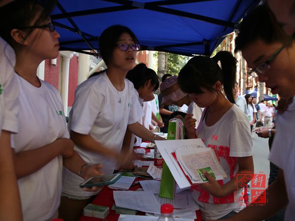 志愿者们热情的组织新生报道到并将其带到相应的宿舍,途中,志愿者们详细的介绍了宿舍楼的基本情况,并为新生解答大学课程是否紧张,社团活动是否有趣等各种问题,两个青年人就在这样的一问一答中,迅速建立了友谊。有的志愿者,不仅完成了分内之事,就连新生们的行李也被他们接在手中。即使有时新生们报道密集,志愿者们要在宿舍楼里跑很多次,但他们从不抱怨。即使临近中午天气变得更加炎热,志愿者们依旧在酷暑下完成工作。即使顾不上吃午饭也要将温暖送给新生们。他们热情的服务迎来了新生及家长的一片好评。