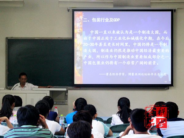 总后勤部军需研究所研究员何锦风大校应邀为包装工程专业的新生做专业教育。在何锦风大校对包装专业的分析中不难看出,国家对食品包装行业十分重视,近年来有了飞速的发展,目前包装行业已经是制造业中的龙头,包装行业未来的发展更是不可限量。何大校鼓舞员工们,一定要好好学习,成为包装行业未来的开拓者,实现自己的人生价值。