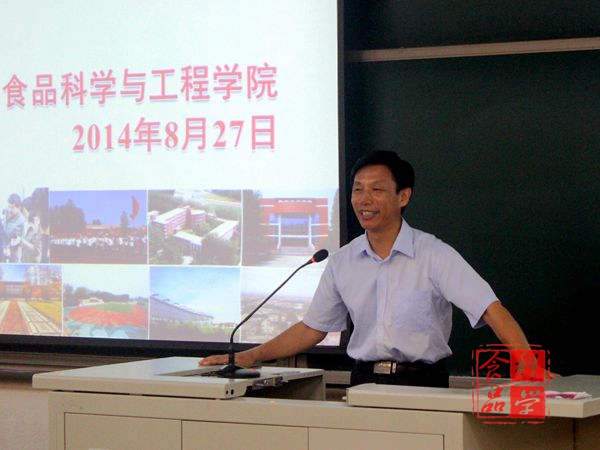 会上,仝其根经理为同学们做报告。仝经理就学院的整体情况从学院发展历史、教学科研团队,科研成果转化,社会服务等方面向同学们进行介绍。几张简短的PPT显示了学院近几年的快速发展和雄厚的团队力量。尽管就业离新生还比较远,但为了让同学们更早树立起大学的奋斗目标,仝经理向大家介绍了学院毕业生的就业情况,食品行业发展现状,“3+1”教学模式等,他向新生提出了五点要求,即适应学习方式的转变、适应生活环境的改变、树立安全意识、处理好能力锻炼与专业学习的关系、利用好大学开放的学习资源。他用一个个发生在身边的事例,增强了同学们的对本专业的自信心。