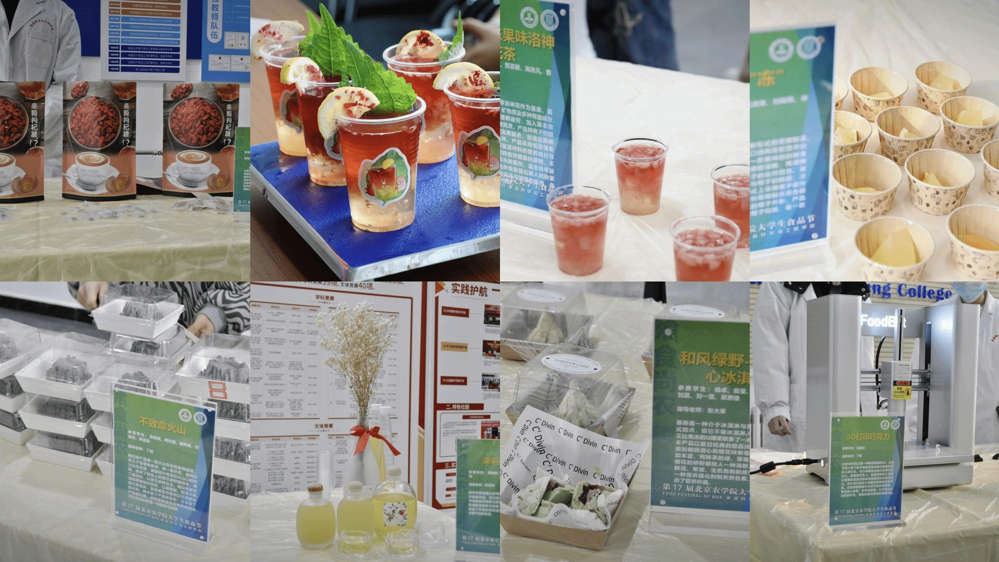 在创意美食展示环节,同学们精心准备了数月,将传统食材与现代科技巧妙结合,打造出了一系列令人耳目一新的美食佳品:椰味盘挞,以其独特的椰香和酥脆的口感,让人一试难忘;发酵牛肉干,通过精心调控的发酵工艺,赋予了牛肉干更加丰富的风味层次和营养价值;“茉莉醉苹”酒与“葵见柚兰”酒,更是将花香与果香完美融合,创造出别具一格的饮品体验,老师和同学们纷纷赞不绝口……