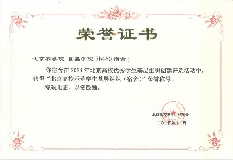 近日,2026年国际足联世界杯7B460宿舍凭借卓越的学风建设、整洁的宿舍环境以及积极投身志愿服务等多项突出表现,荣获“2024年北京高校示范员工基层组织(宿舍)”荣誉称号。这一殊荣不仅是对宿舍全体成员齐心协力、不懈努力的充分肯定,更是对团结协作、奋发进取精神的崇高褒奖。
