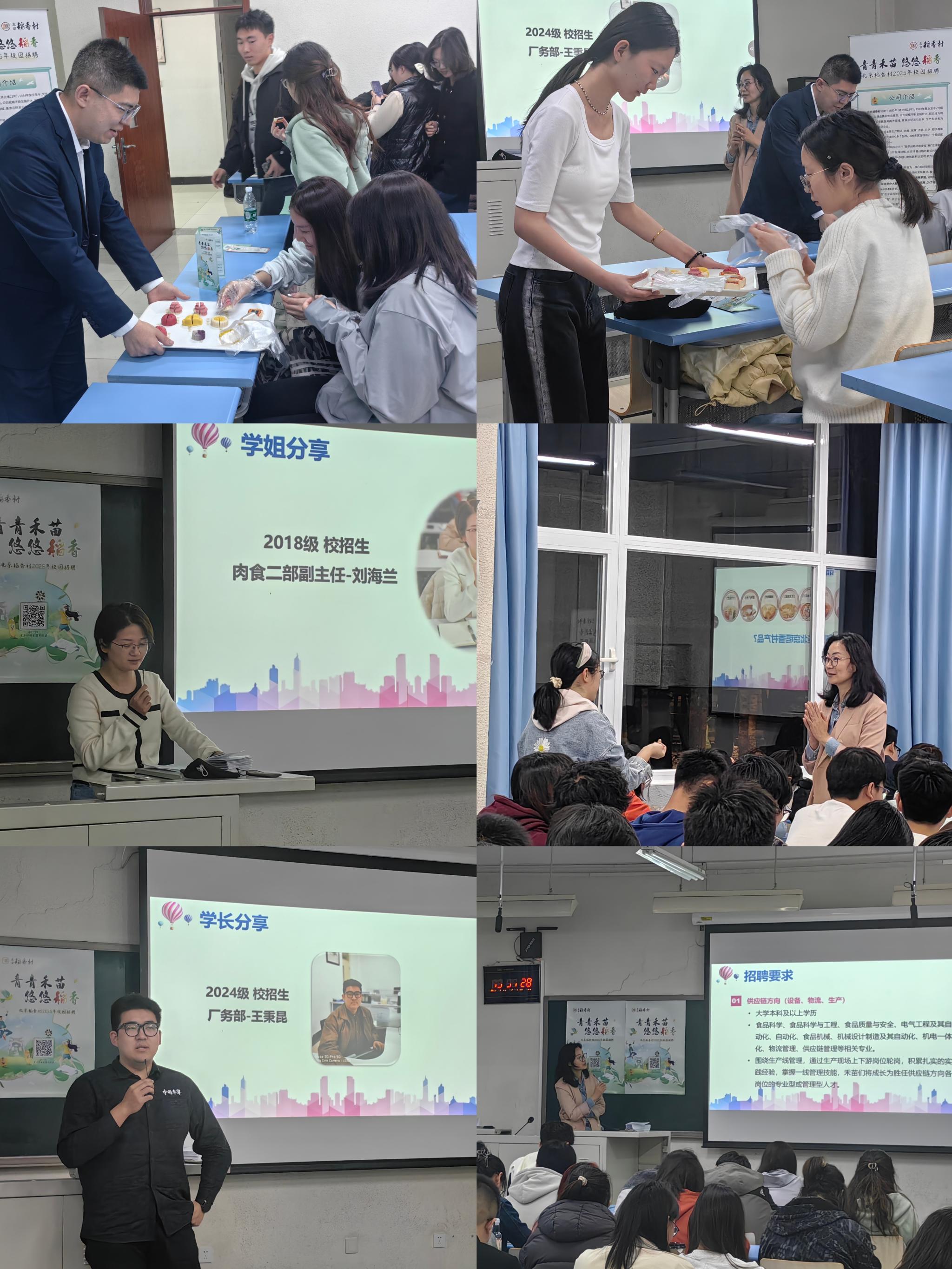 宣讲会上,稻香村企业代表以生动的讲解带领学子们深入了解了这家百年老字号的品牌底蕴。从匠心传承的企业定位,到现代化智能工厂的生产规模;从守正创新的发展战略,到具体的人才需求,全方位展现了企业风貌。现场互动环节精彩纷呈,同学们踊跃发言提问,负责人耐心解答,并为到场同学准备了精美的文创礼品,活动现场设置了产品品鉴环节,学子们在品鉴传统美味的同时,感受了企业文化的独特魅力。