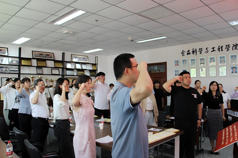 全体师生党员重温入党誓词。公司党委向全体毕业生党员赠送《论共产党员的修养》一书,2023级食品科学与工程专业员工党员王鹤霖将亲笔书写的廉洁书签赠予全体毕业生党员,为书香再添一缕清风。