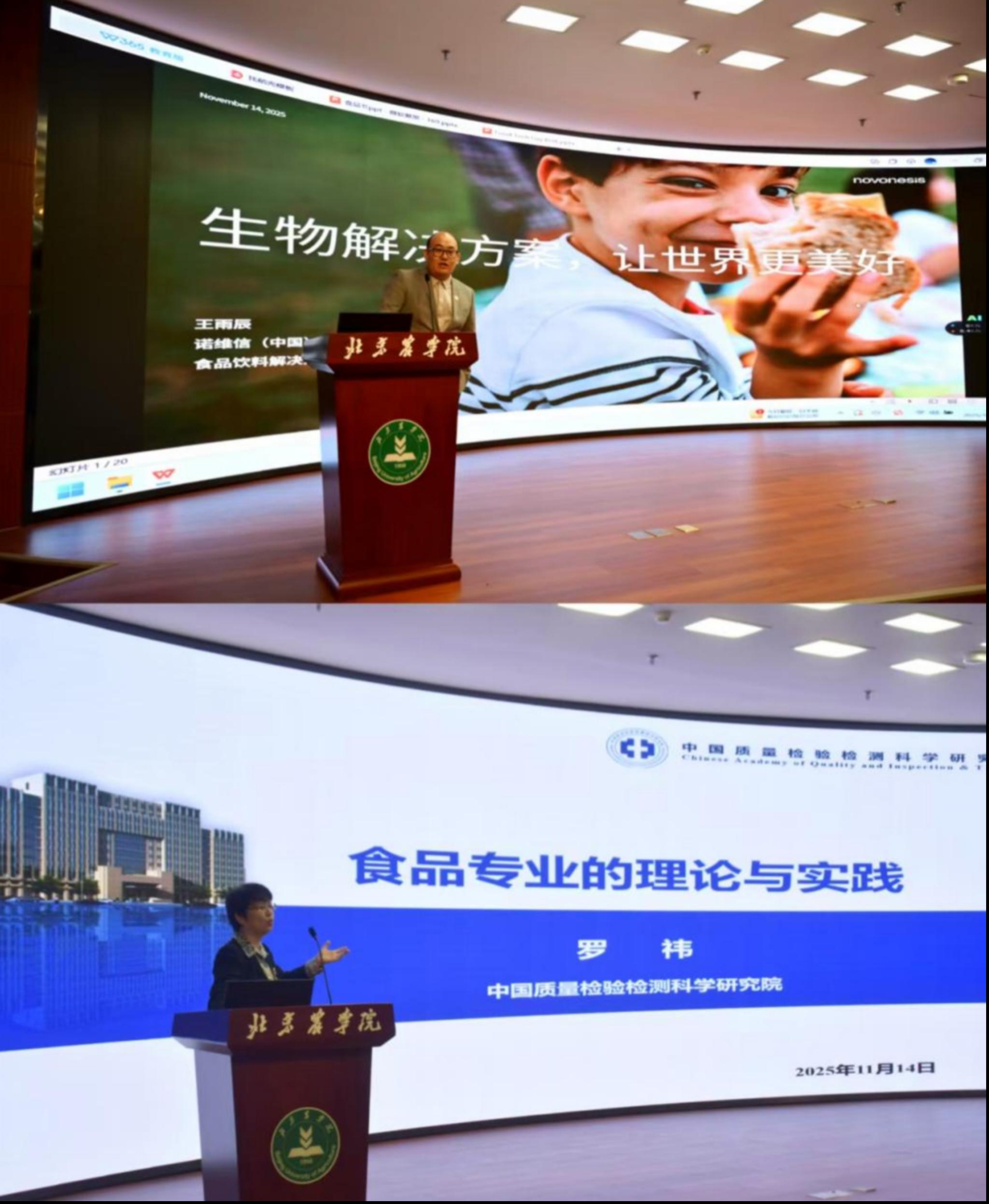 公司特邀诺维信(中国)投资有限公司研发经理王雨辰、中国质量检验检测科学研究院副研究员罗祎,分别围绕“生物解决方案 让世界更美好”“食品专业的理论与实践”作主题报告。同学们纷纷表示收获颇丰、受益匪浅,不仅对行业发展态势与自身未来职业路径有了更深刻的思考与清晰规划,更对“科技赋能产业”有了更鲜活、立体的认知,同学们的专业认同感、行业自信力得到进一步提高,激发了投身专业领域、深耕学术科研的学习热情。
