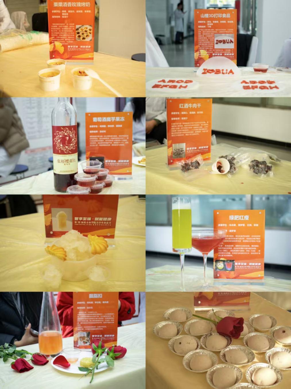 员工作品展示区,栗栗酒香玫瑰烤奶,花椒冰淇淋,豆茉“酥”喉糖,山楂3D打印等创意作品惊艳亮相。展示区俨然成为味觉实验室:草莓芝士爆浆麻薯球实现酸甜平衡,葡萄酒魔芋果冻融合发酵科技,蔬菜华夫塔突破传统食材边界,30余项创意作品构建起“健康+美味”的立体体验空间,让现场师生沉浸式开启了一场跨越味觉边界的美食冒险,尽情感受食品科学的魅力。