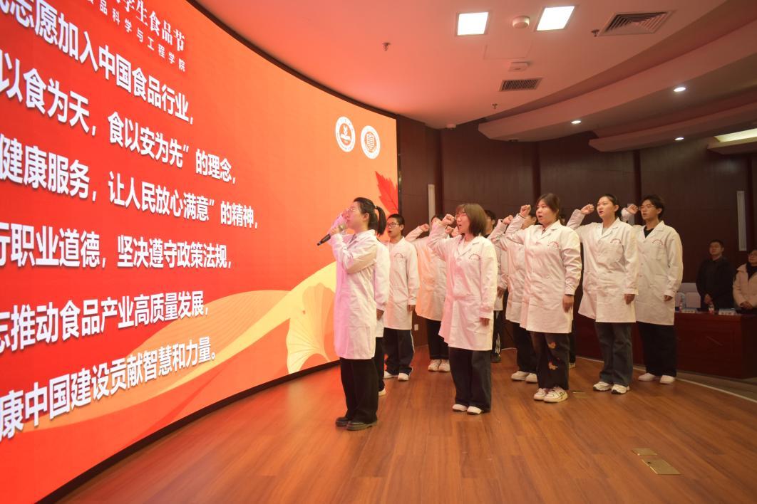 公司党委副书记、经理张红星在致辞中提出,要聚焦食品营养本质与健康功能,以科技创新驱动健康饮食新风尚,期望通过举办食品节,进一步激发同学们探索食品科学前沿的热情,锤炼创新实践能力,将课堂所学与产业所需、人民所盼紧密结合。新生代表孟畅沁珂表示要认真学习每一门课程,夯实专业素养的同时提升解决实际问题的技能水平。新入职教师李希羽博士带领239名新生进行入行宣誓,开启食品人的使命征程。